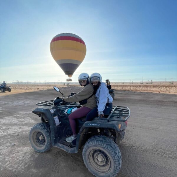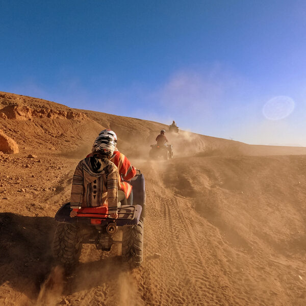 Explorez Marrakech à deux sur nos quads : partagez l’excitation du voyage en montant derrière le pilote pour une aventure inoubliable à travers des paysages captivants.